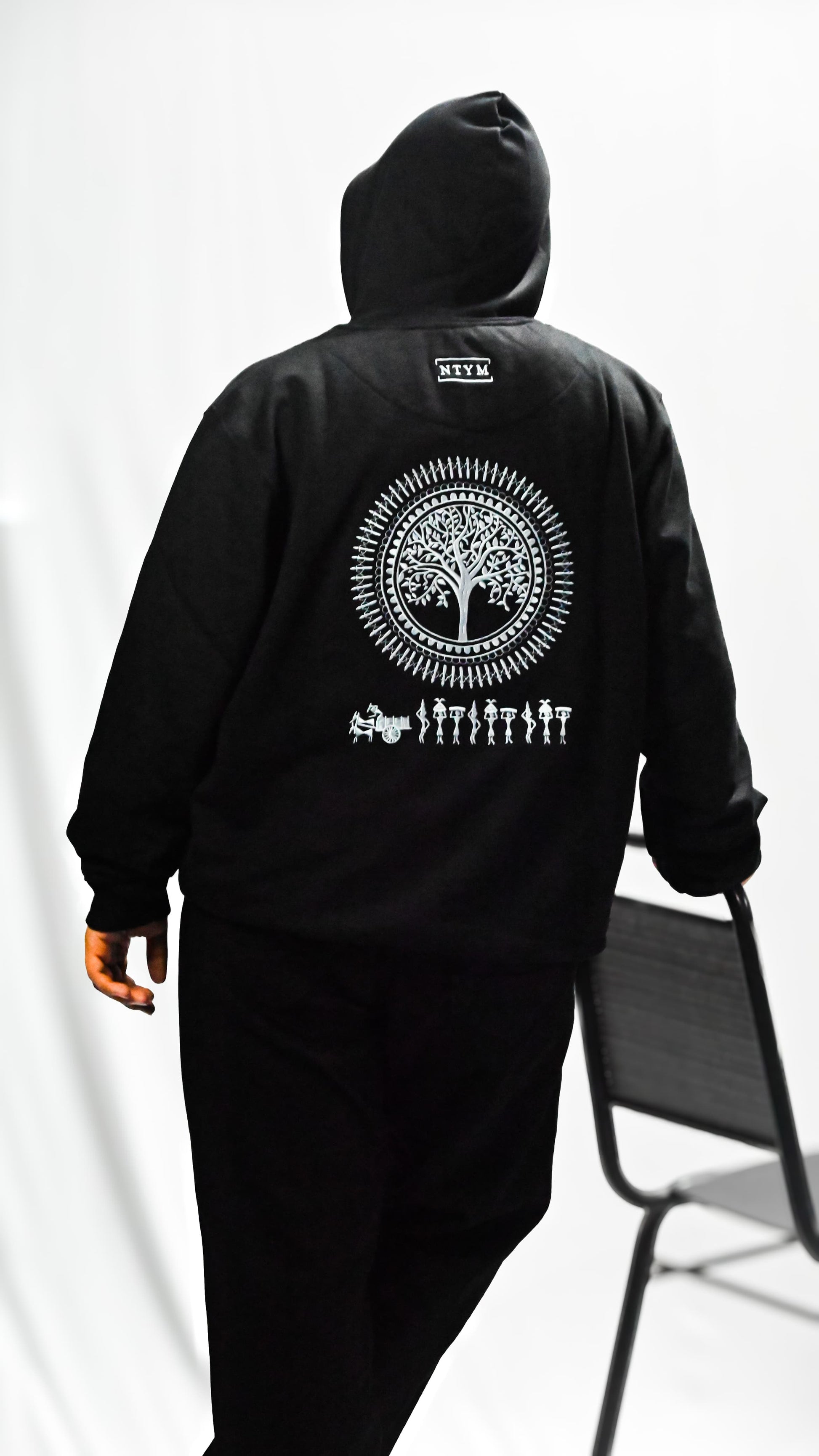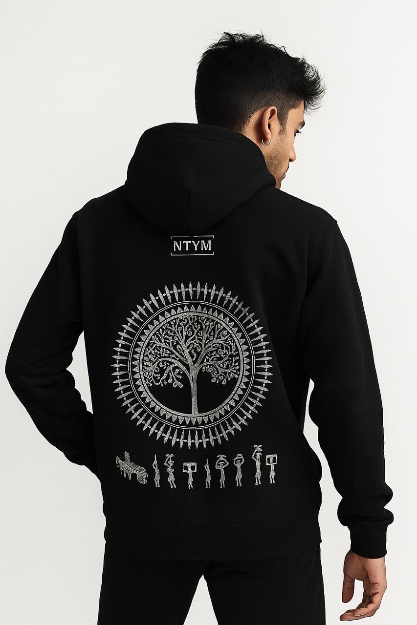 | NTYM | BLACK HOODIE with Warli Embroidery | Unisex |