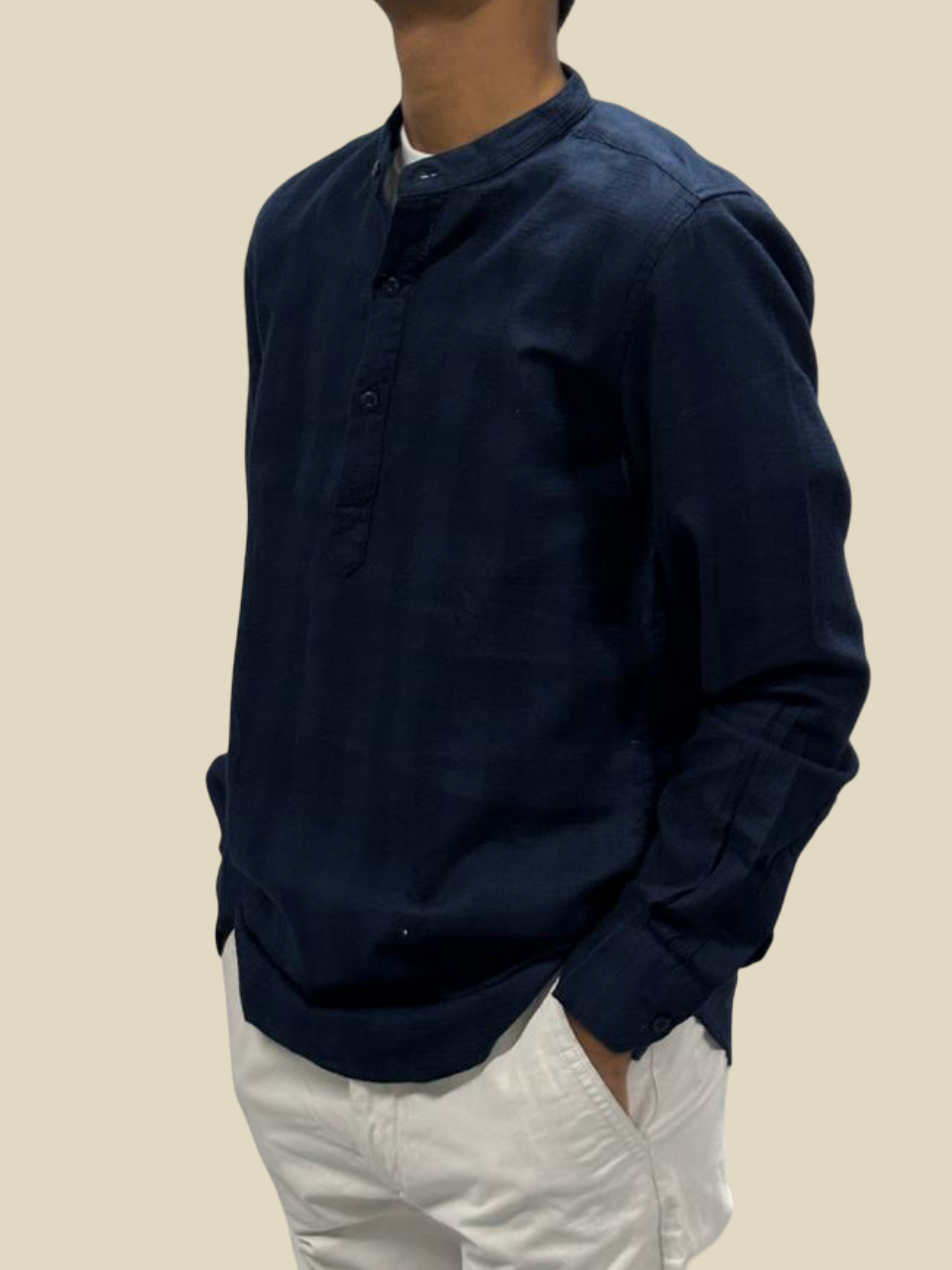 Versatile Cotton Kurta Shirt - Deep Navy Blue