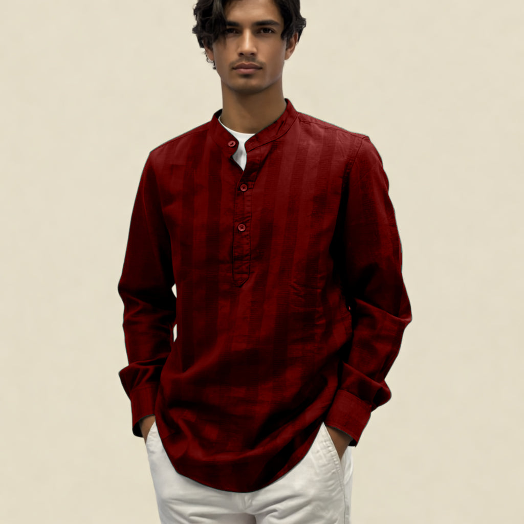 Crafted from breathable cotton, this maroon kurta shirt combines traditional style with modern versatility. Its comfortable fabric ensures all-day wearability, while the rich maroon hue adds a refined touch to any wardrobe. Perfect for both casual gatherings and formal occasions, this kurta offers a balanced blend of comfort and elegance.